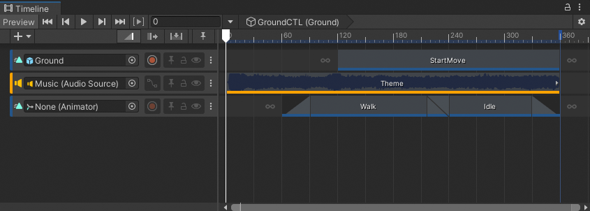 For example, if you select a GameObject that is associated with a Timeline asset, the Timeline window displays the tracks and clips from the Timeline asset and the GameObject bindings from the Timeline instance.